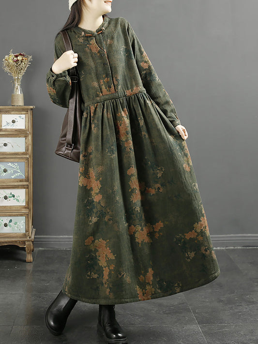 بالإضافة إلى حجم المرأة ارتسي المزخرفة الأزهار زر الدعاوى الطويلة فضفاضة