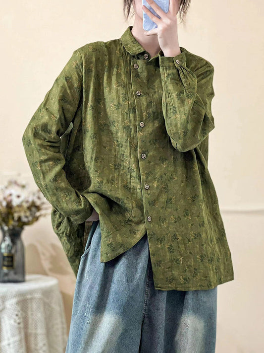 بالإضافة إلى حجم المرأة الخريف خمر الأزهار قميص طويل الأكمام
