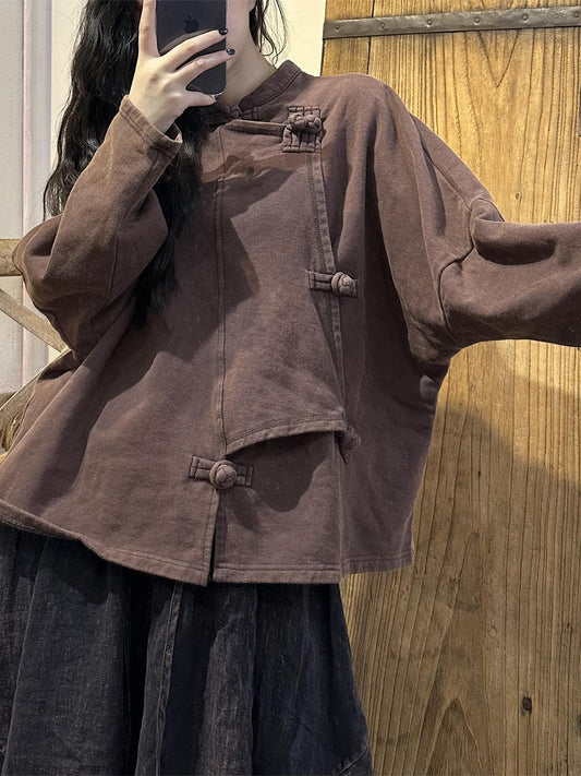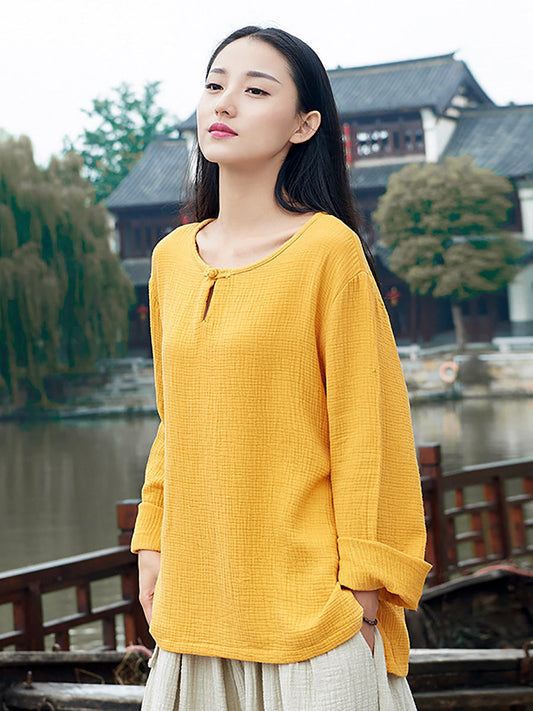 بالإضافة إلى حجم المرأة الخريف خمر لون نقي قميص مائل