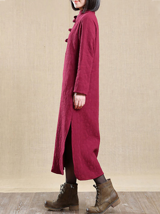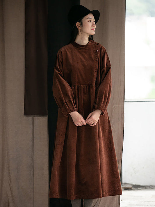 حجم كبير فستان نسائي خريفي بياقة واقفة 100% قطن