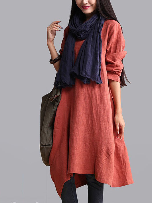 بالإضافة إلى حجم المرأة الخريف فستان فضفاض الصلبة عادية