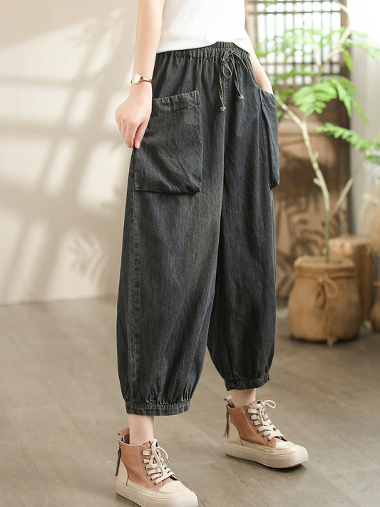 بنطلون حريم نسائي فضفاض من قماش الدنيم بنمط عتيق