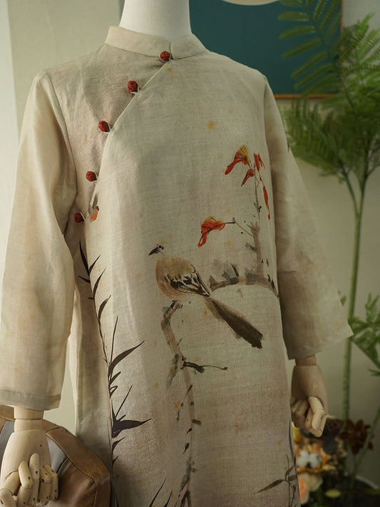 فستان نسائي صيفي من الكتان بطبعة عتيقة