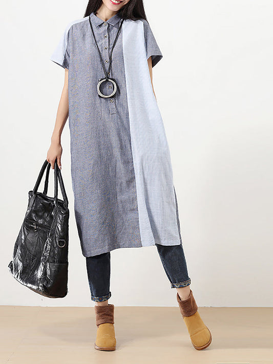 فستان نسائي صيفي من الكتان والقطن بياقة بولو بمقاسات كبيرة