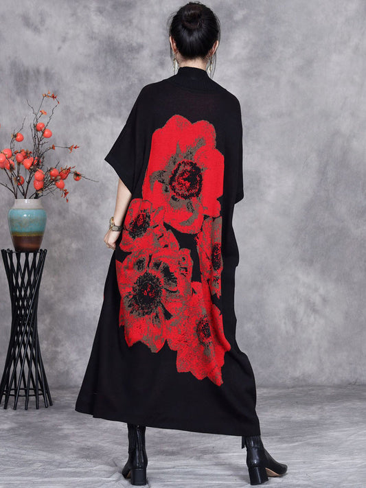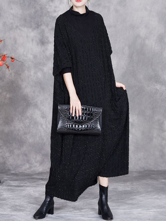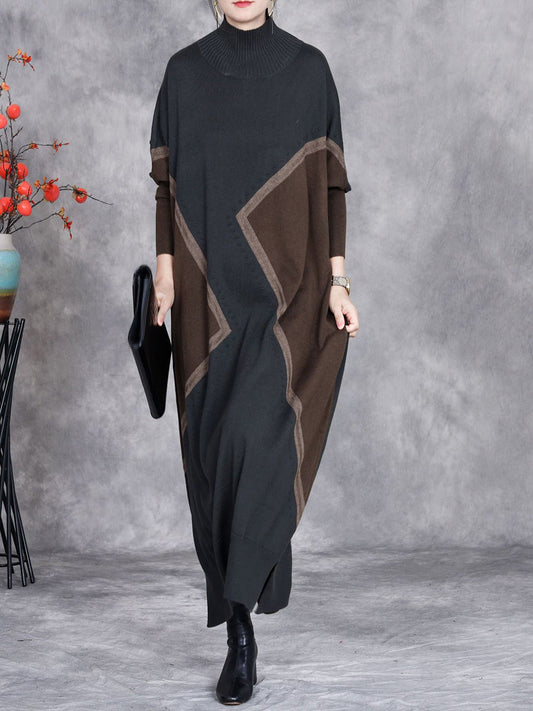 فستان نسائي فضفاض محبوك من الكشمير الصلب بتصميم فني لفصل الخريف