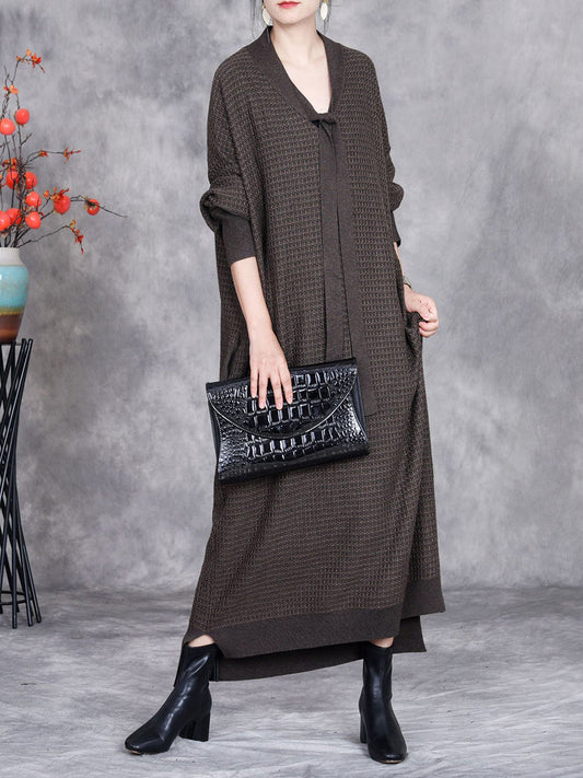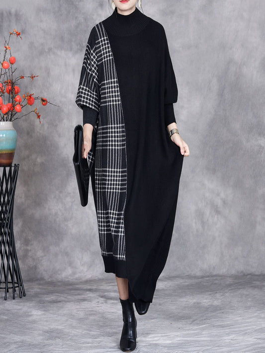 فستان نسائي خريفي من قماش محبوك غير منتظم بنقشة مربعات