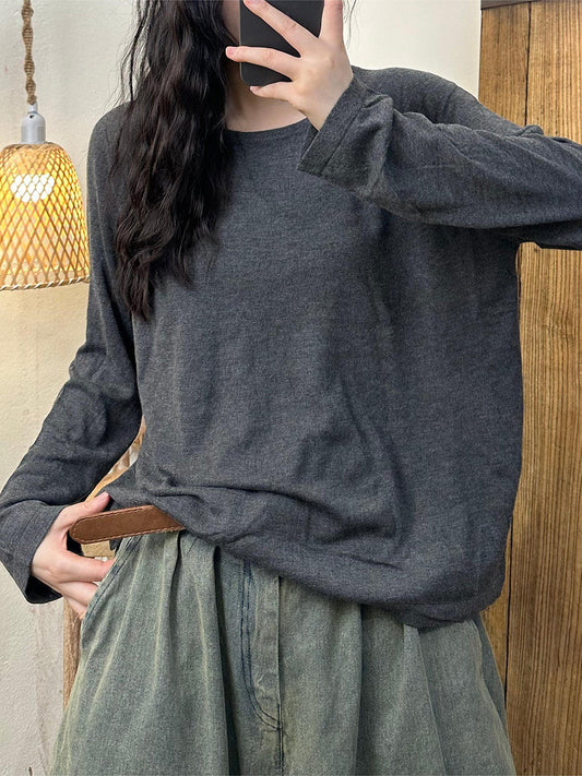 سويت شيرت نسائي صيفي خريفي من الصوف بياقة دائرية
