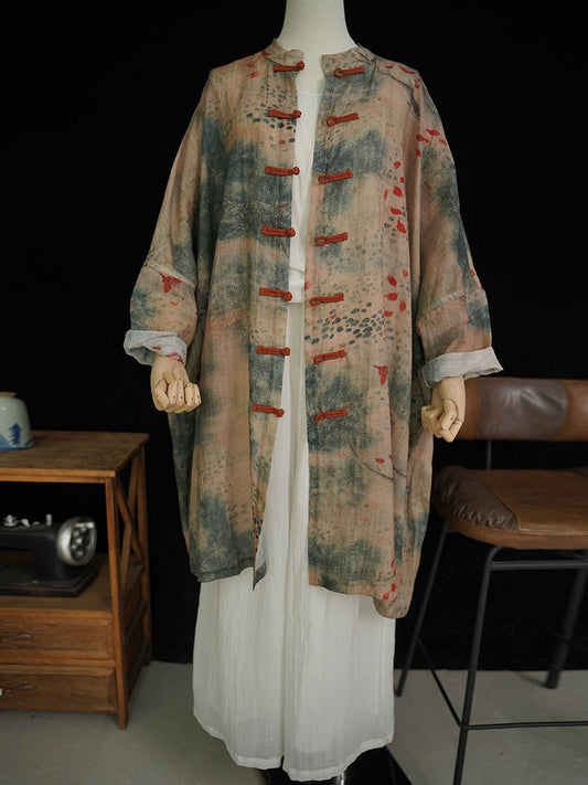معطف نسائي من قماش الرامي بطبعة عرقية لفصل الخريف مع أزرار