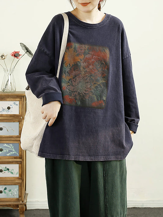 سويت شيرت نسائي من القطن برقبة دائرية مزين بزهور في فصل الخريف