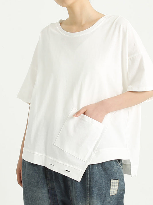 مقاس كبير - تي شيرت نسائي من الكتان ذو رقبة دائرية غير منتظم