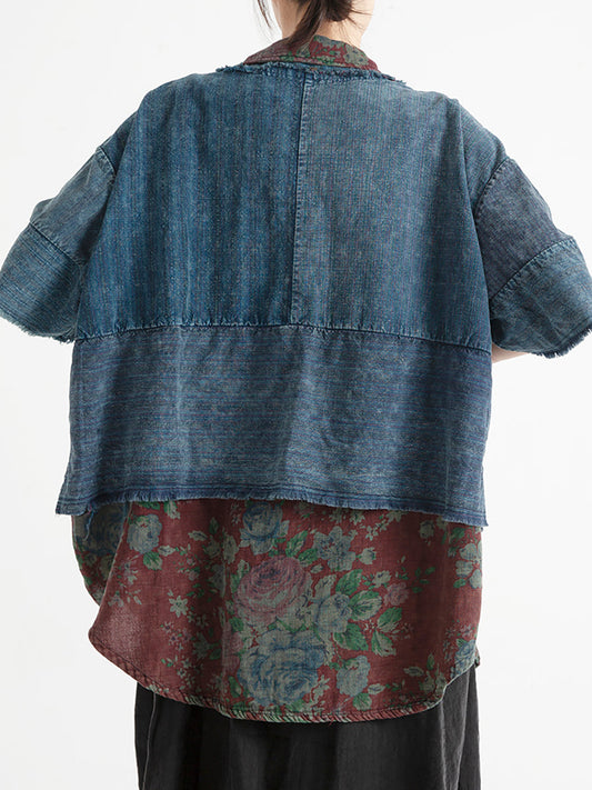 بالإضافة إلى حجم قميص الكتان خمر الأزهار المرأة الصيف