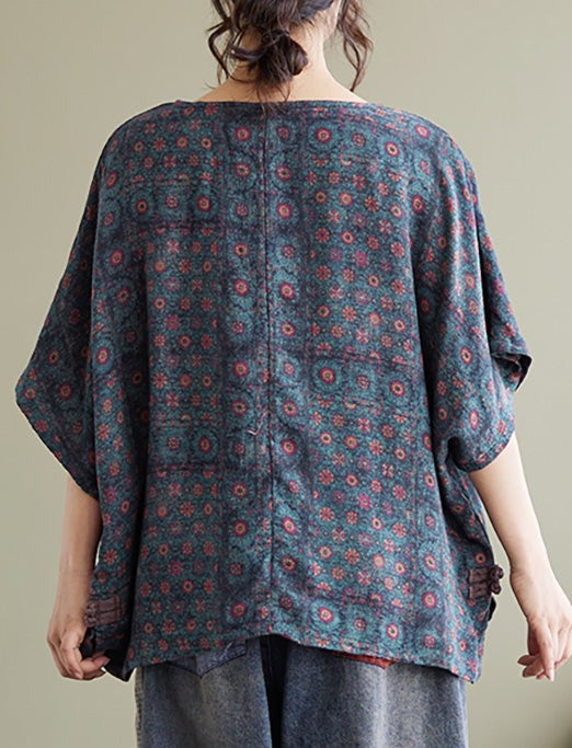 قميص نسائي صيفي عتيق بطبعة زهور مقاس كبير