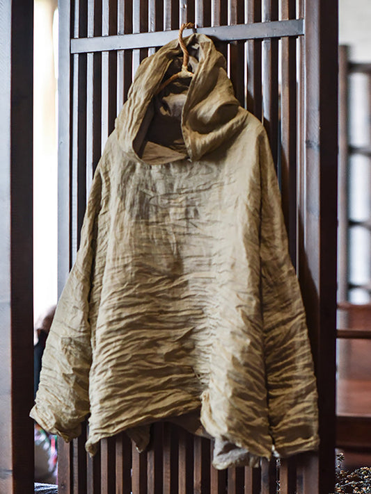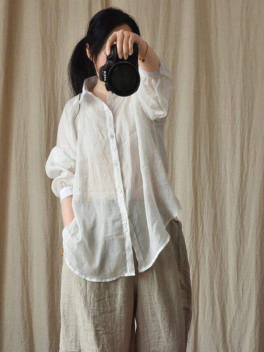 بلوزة نسائية طويلة فضفاضة من الكتان الصلب بتصميم كلاسيكي