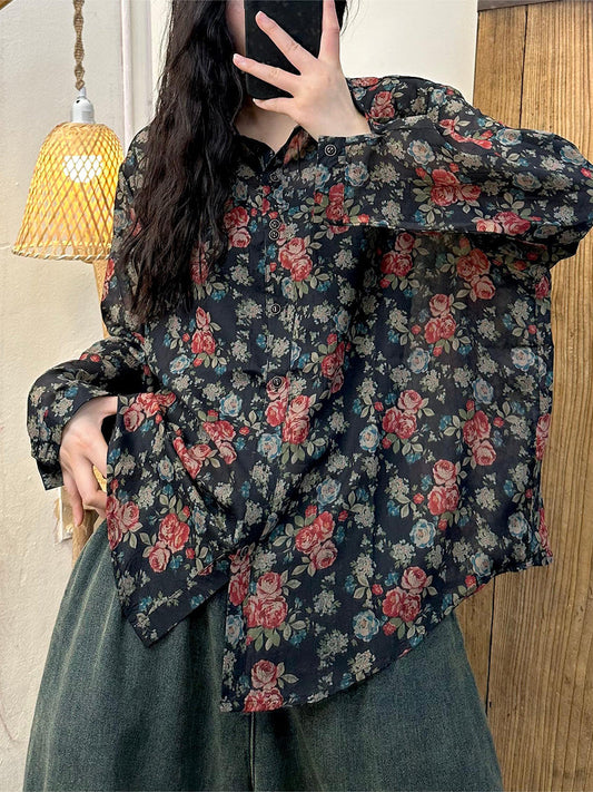 بلوزة نسائية ربيعية بأزرار مزينة بنقشة زهور عتيقة