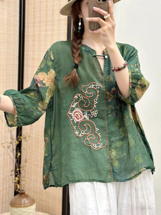 بلوزة نسائية من قماش الرامي المطرز بالزهور العتيقة