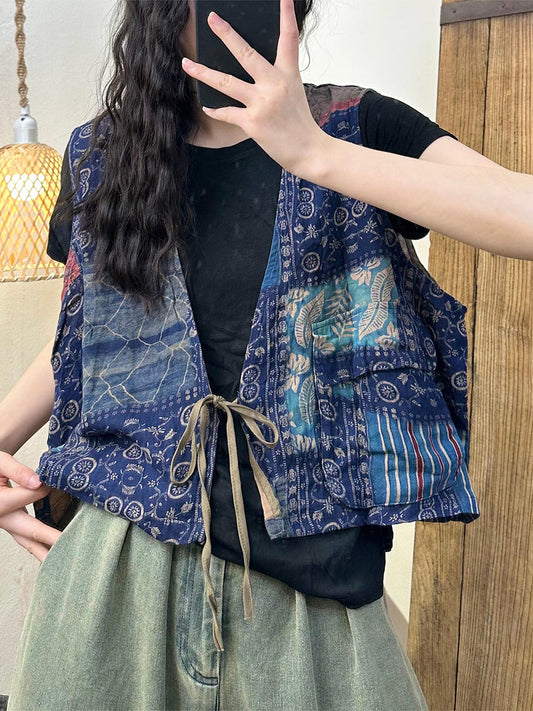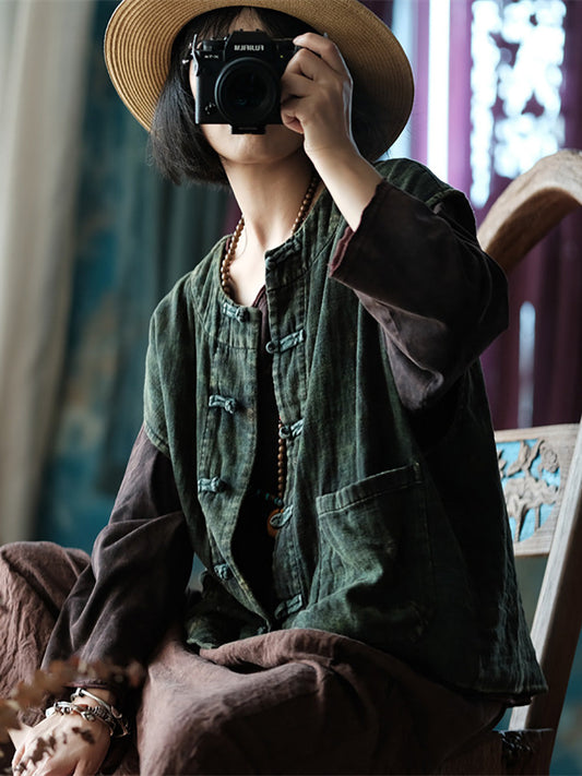 سترة نسائية صيفية من القطن بأزرار مطبوعة بنمط عتيق