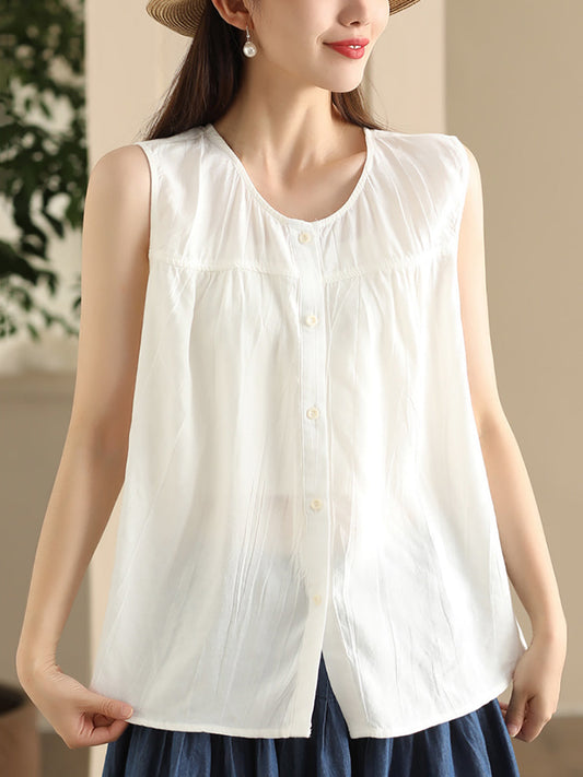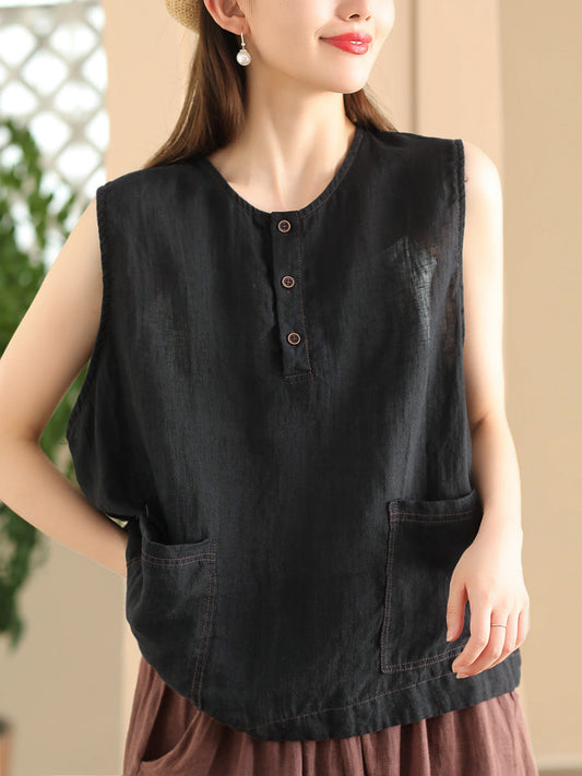 سترة نسائية كاجوال من الكتان ذات أزرار ورقبة دائرية