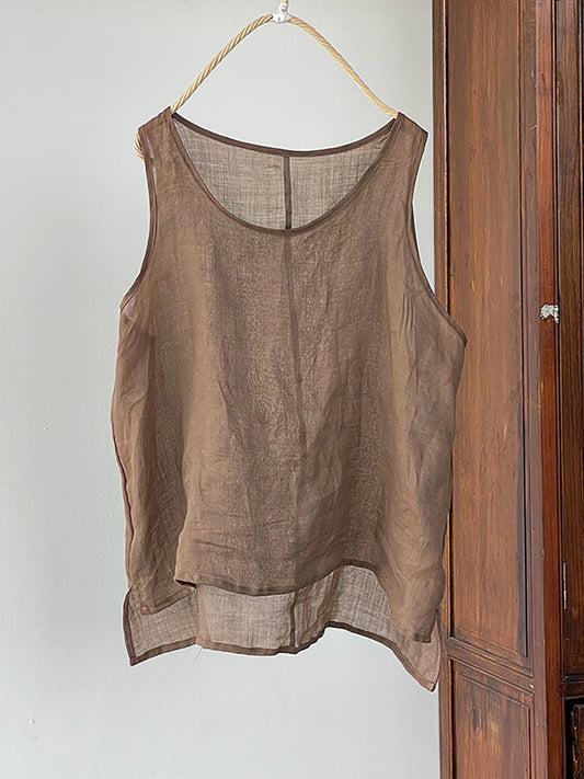 سترة نسائية صيفية كلاسيكية من الكتان برقبة دائرية وجيب سادة
