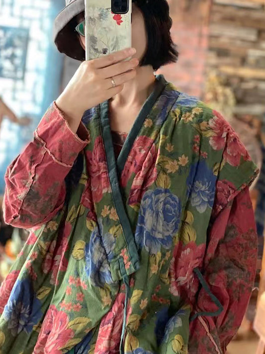 سترة نسائية بطبعات زهور ريترو ملونة