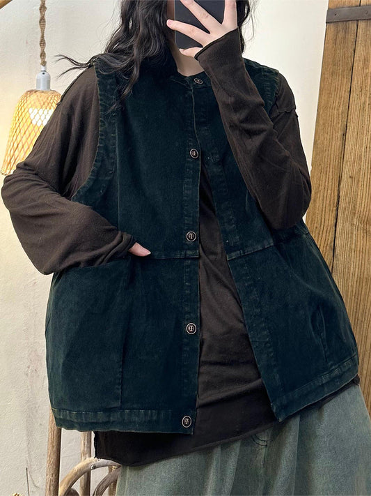 سترة نسائية صيفية كاجوال من قماش مخملي سادة بأزرار