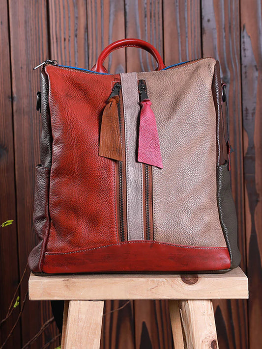 Casual Travel Color Matching Leather Backpack