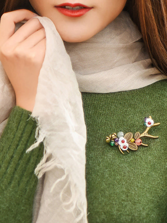 (2 Pieces)Alloy Branch Shell Flower Casual Brooch