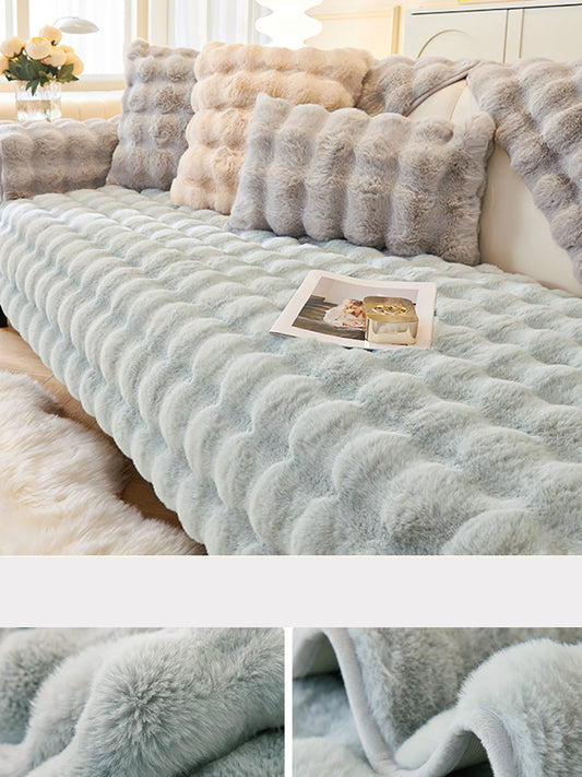 Solid Rabbit Wool Queen Bedcover Sofa Blanket