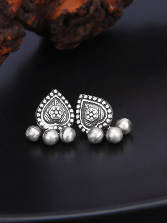 Women Vintage Sliver Carve Bead Pendant Earrings