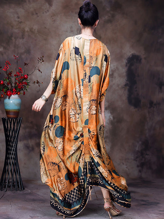 Plus Size Floral Vintage Women Batwing Sleeve Maxi Dress
