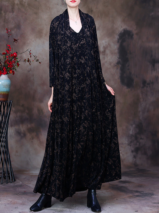 Plus Size V Neck Vintage Women Retro Maxi Dress
