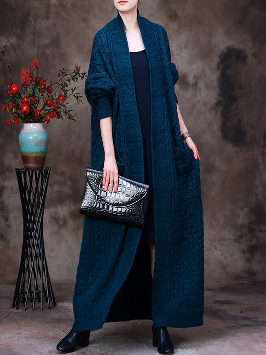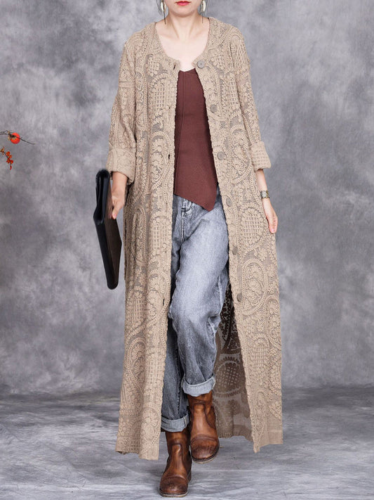 Women Autumn Artsy Embroidery Knitted Long Cardigan Coat