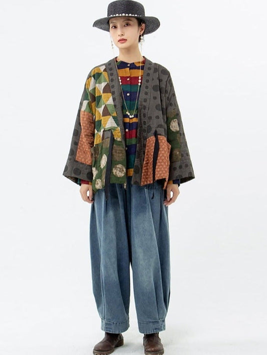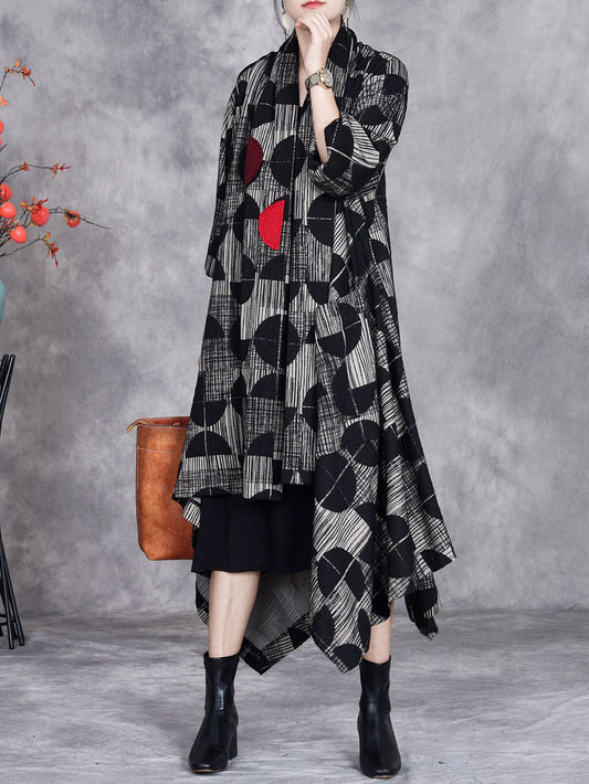 Plus Size Irregular Geometric Pattern Retro Cotton Coat