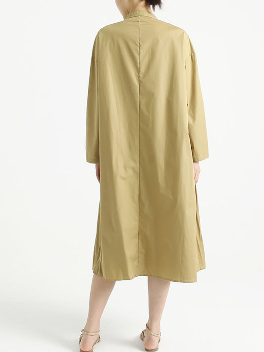 Stand Collar Long Sleeve Loose Casual Cotton Dress