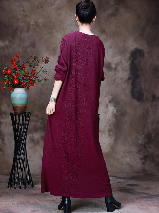 Plus Size Pocket Pleated Long Sleeve Women Maxi Dress