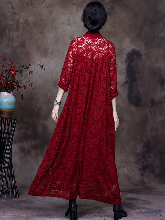 Women Autumn Artsy Dual-layer Cutout Lace Loose Dress