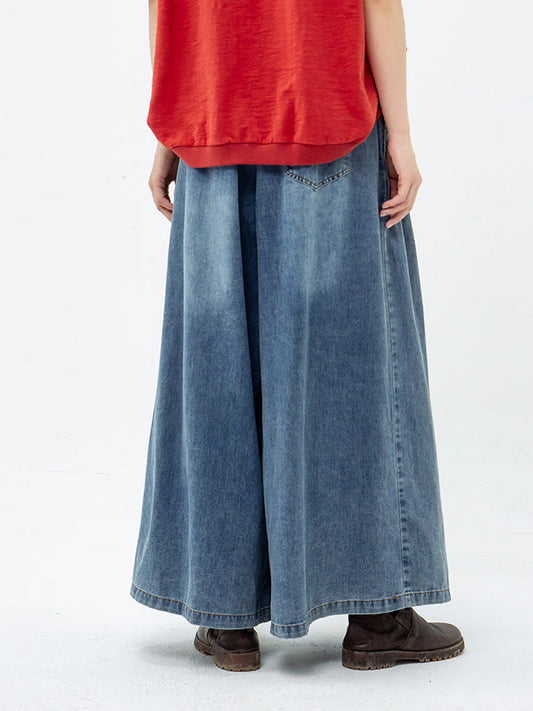 Plus Size Casual Drawstring Blue Denim Wide Leg Pants Jeans