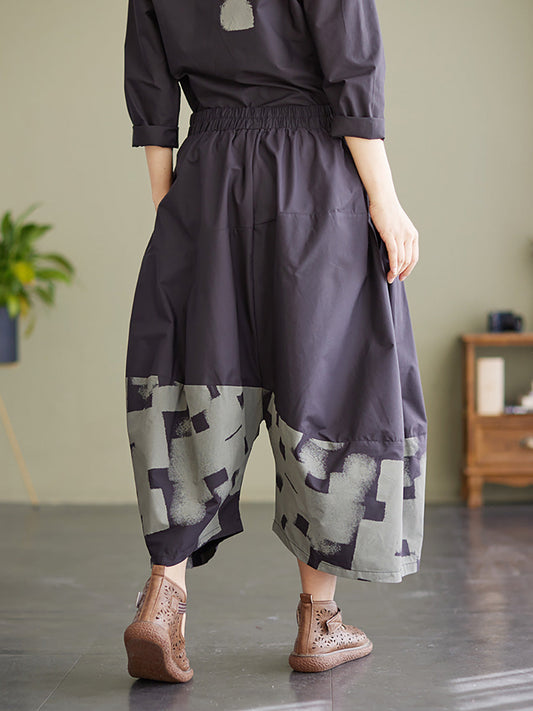 Plus Size Women Cotton Vintage Print Elastic Waist Bloomers