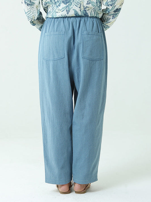 Plus Size Patchwork Linen Loose Elastic Waist Women Harem Pants