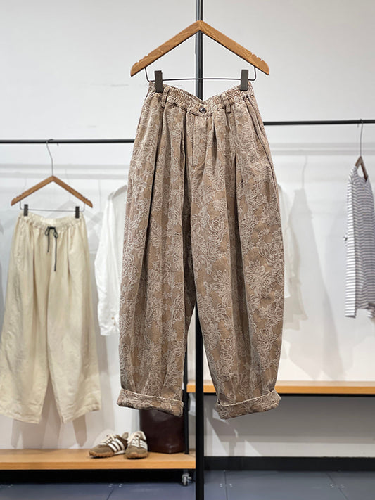 Plus Size Women Vintage Flower Jacquard Loose Pants