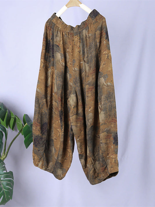 Plus Size Women Summer Casual Solid Ramie Harem Pants