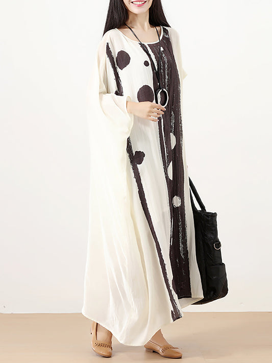 Plus Size - Summer Short Sleeves Loose Prints Dress(Two Pieces)