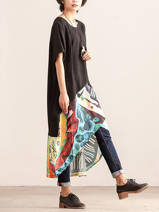 Plus Size Women Summer Loose Casual Irregular Floral Dress