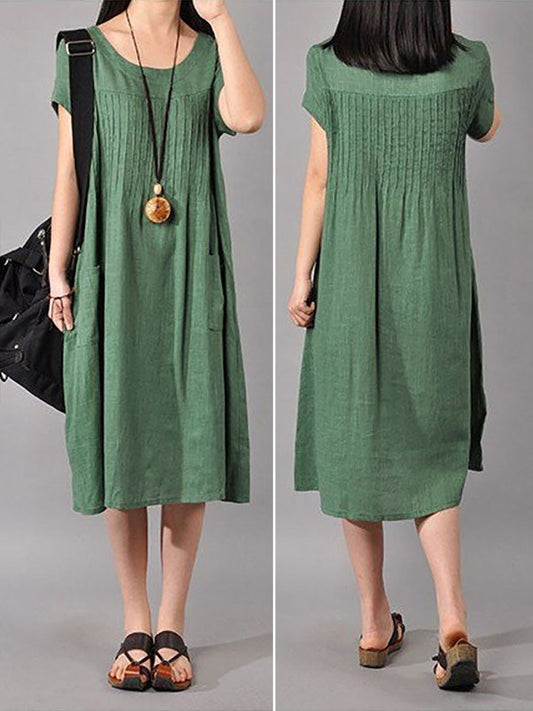 Plus Size Chinese Style Elegant Pleated Loose Linen Dress