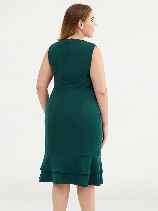 Plus Size Fashion Solid Color V-Neck Sleeveless Dress
