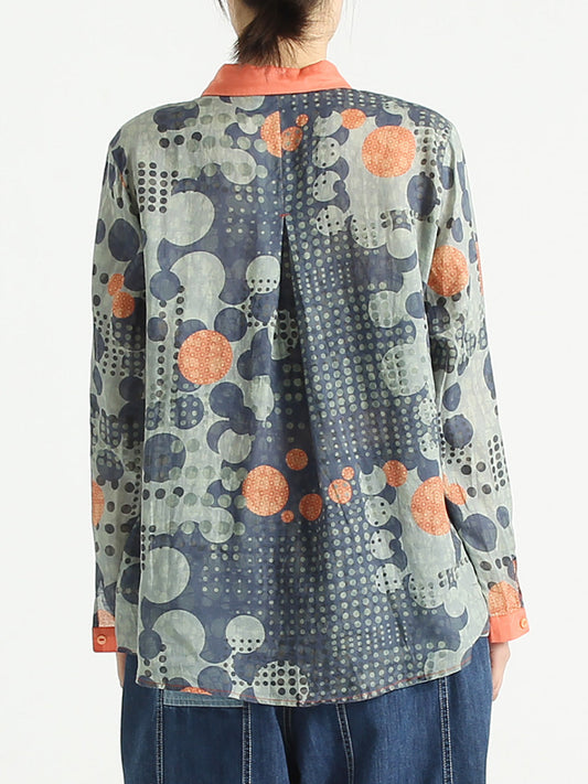 Plus Size Ramie Dots Prints Long Sleeve Women Loose Shirt
