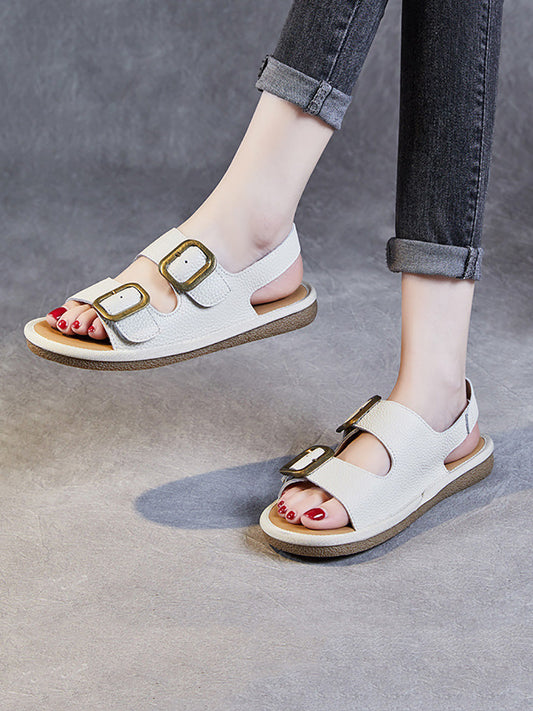 Women Summer Casual Genuine Leather Strap Flat Shoes