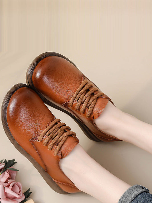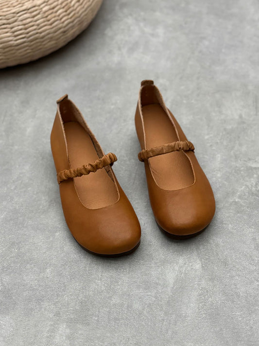 Women Vintage Autumn Genuine Leather Strap Shoes