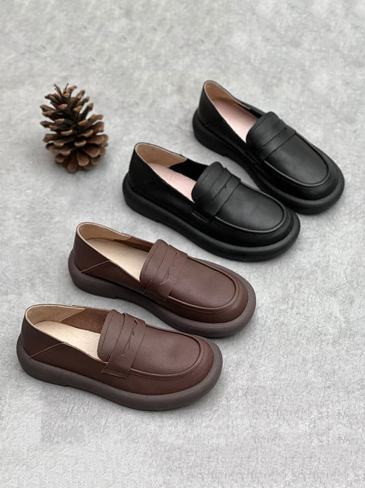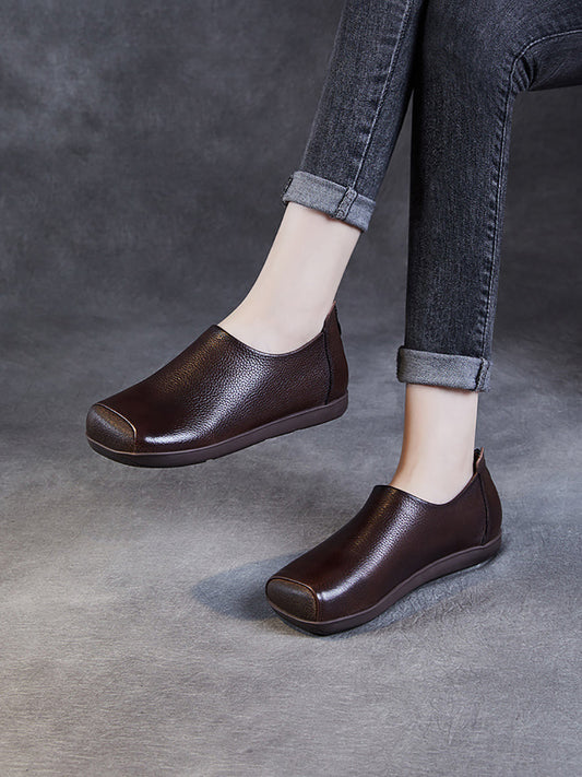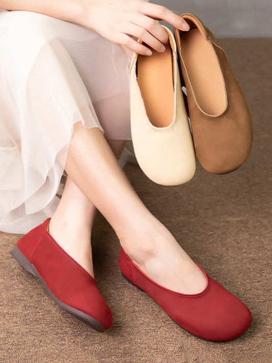 Women Summer Vintage Solid Soft Leather Loafer Shoes