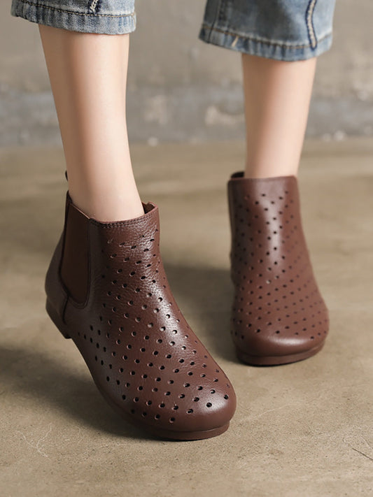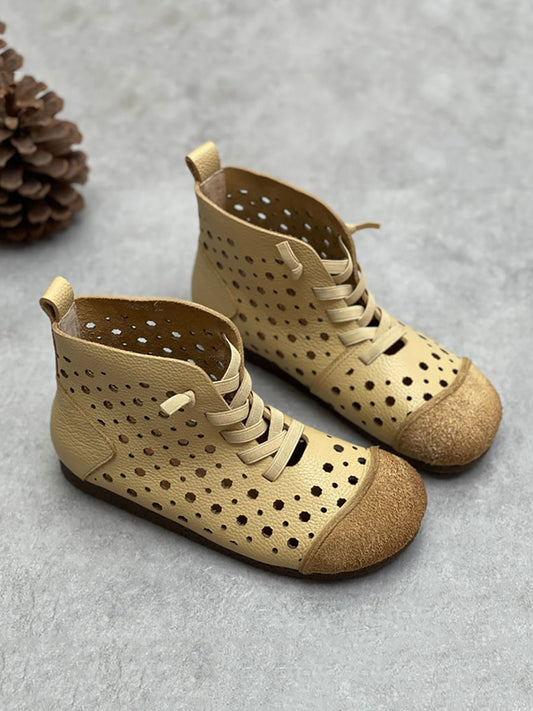Women Summer Vintage Leather Cutout Soft Flat Shoes