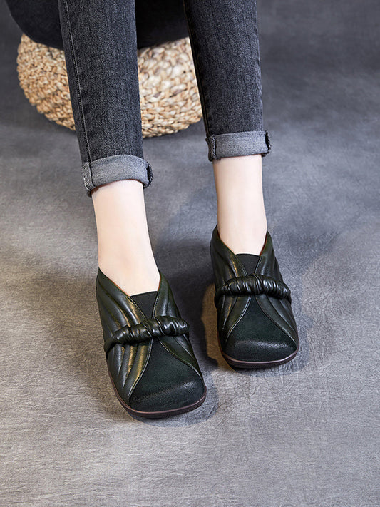 Women Summer Retro Soft Genuine Leather Low Heel Shoes